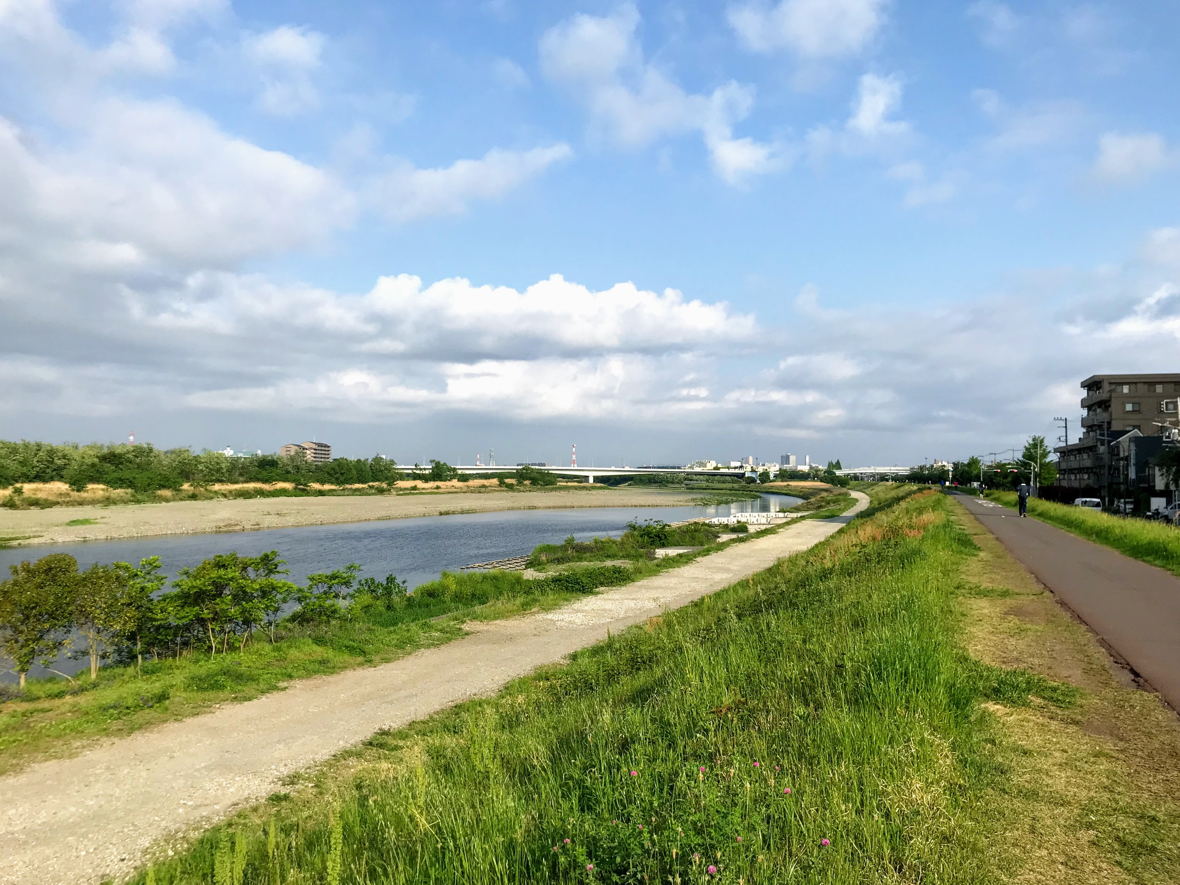 高尾山の大垂水峠を超えて甲州街道で西に向かうべく、多摩川に出てサイクリングロードを使うルートとした