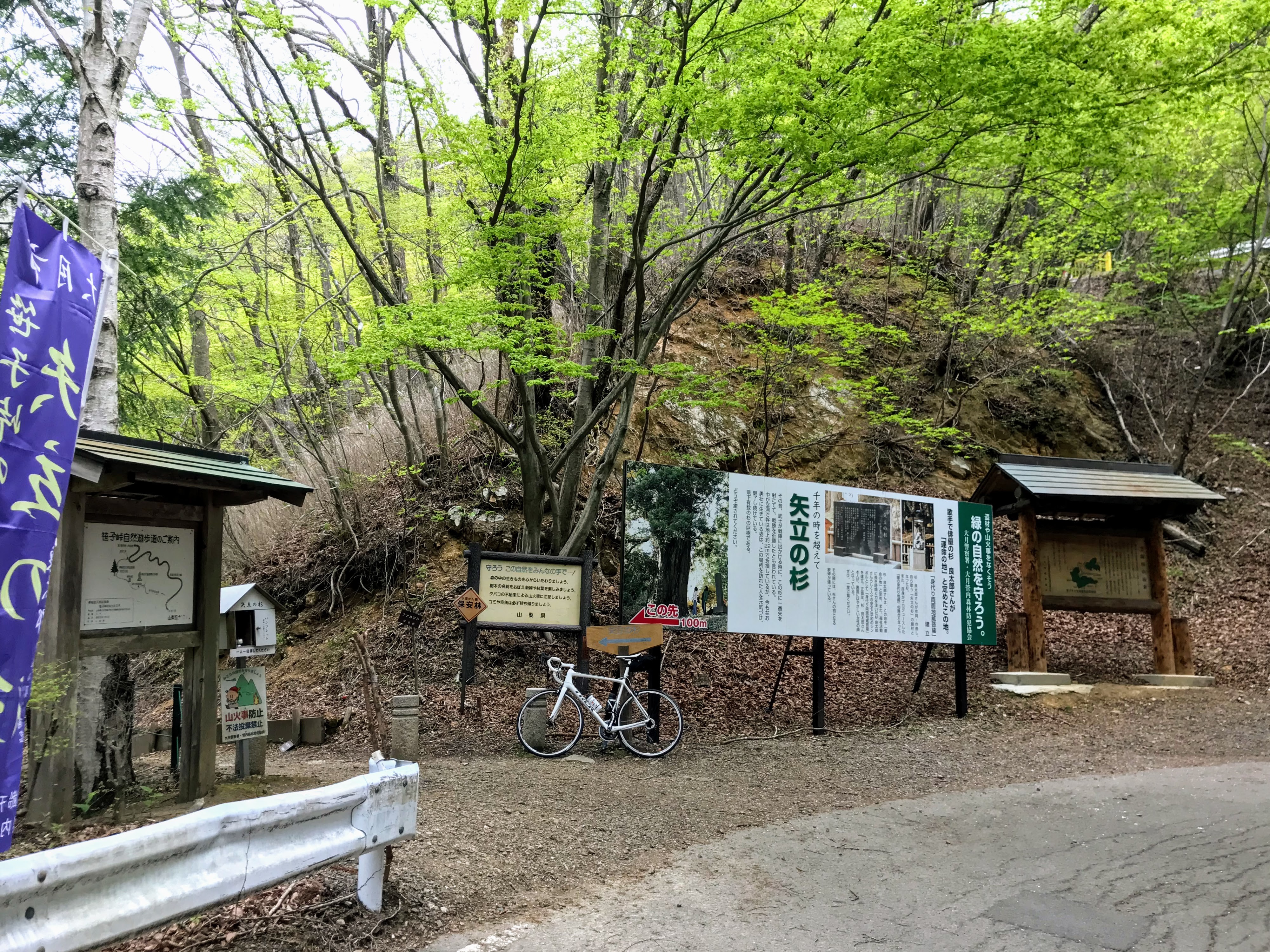 峠の始まりにたどり着くも、他の自転車さんがいたのでうまいこと記念写真をとれず。残念