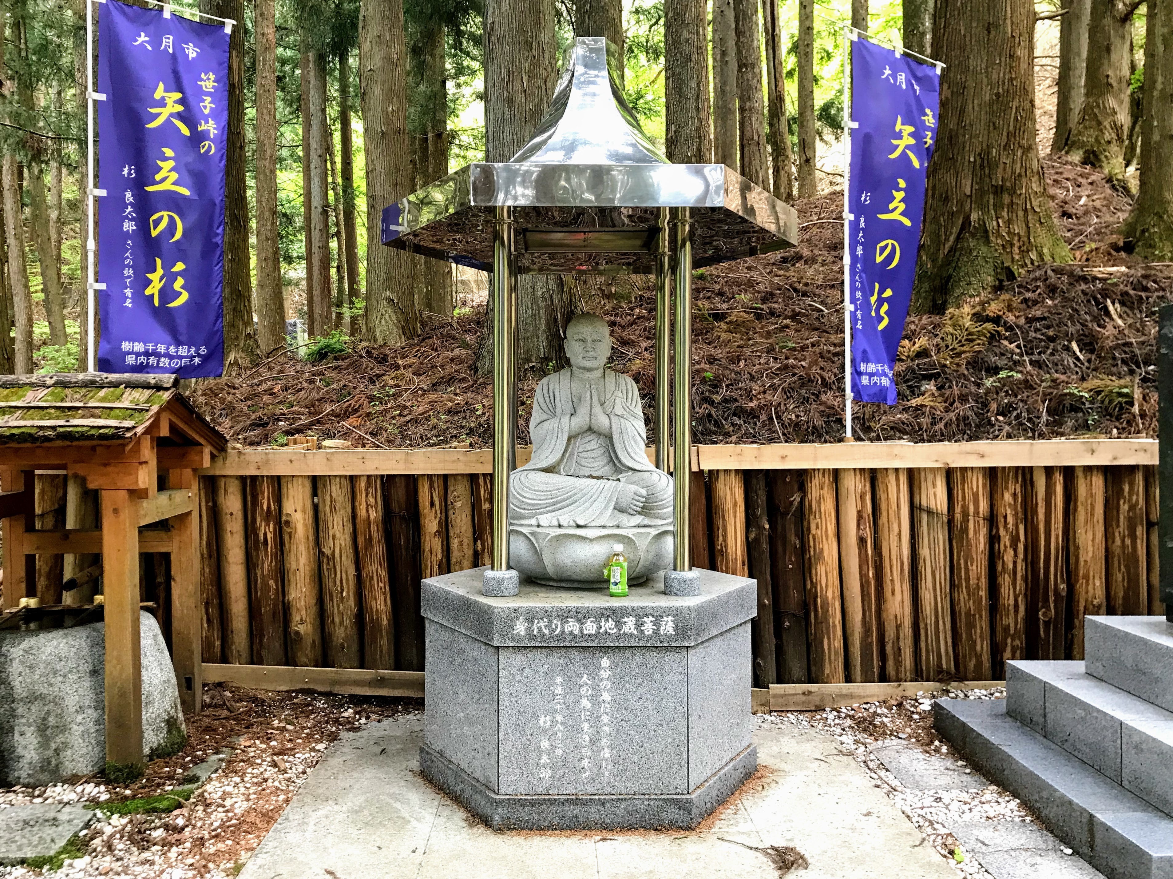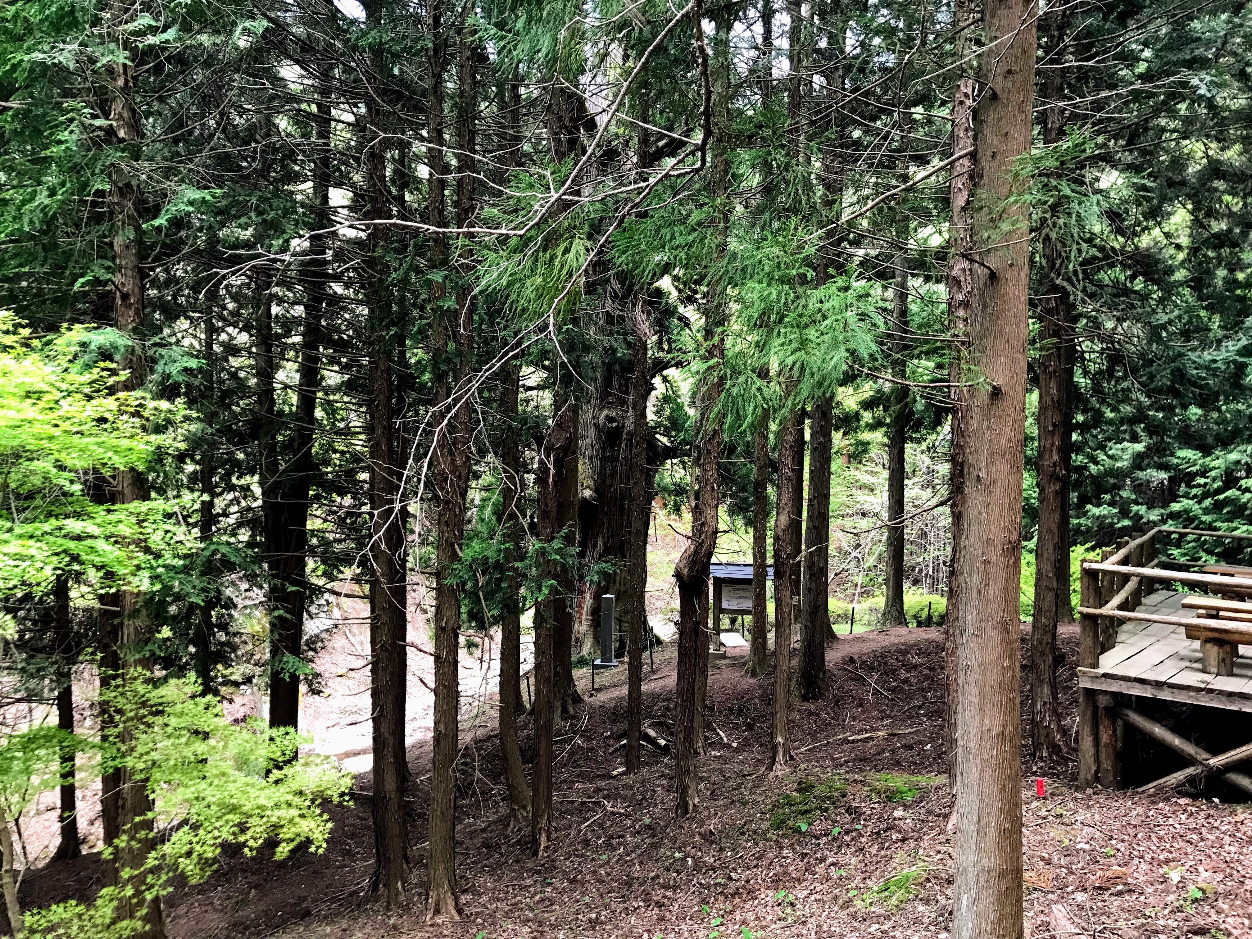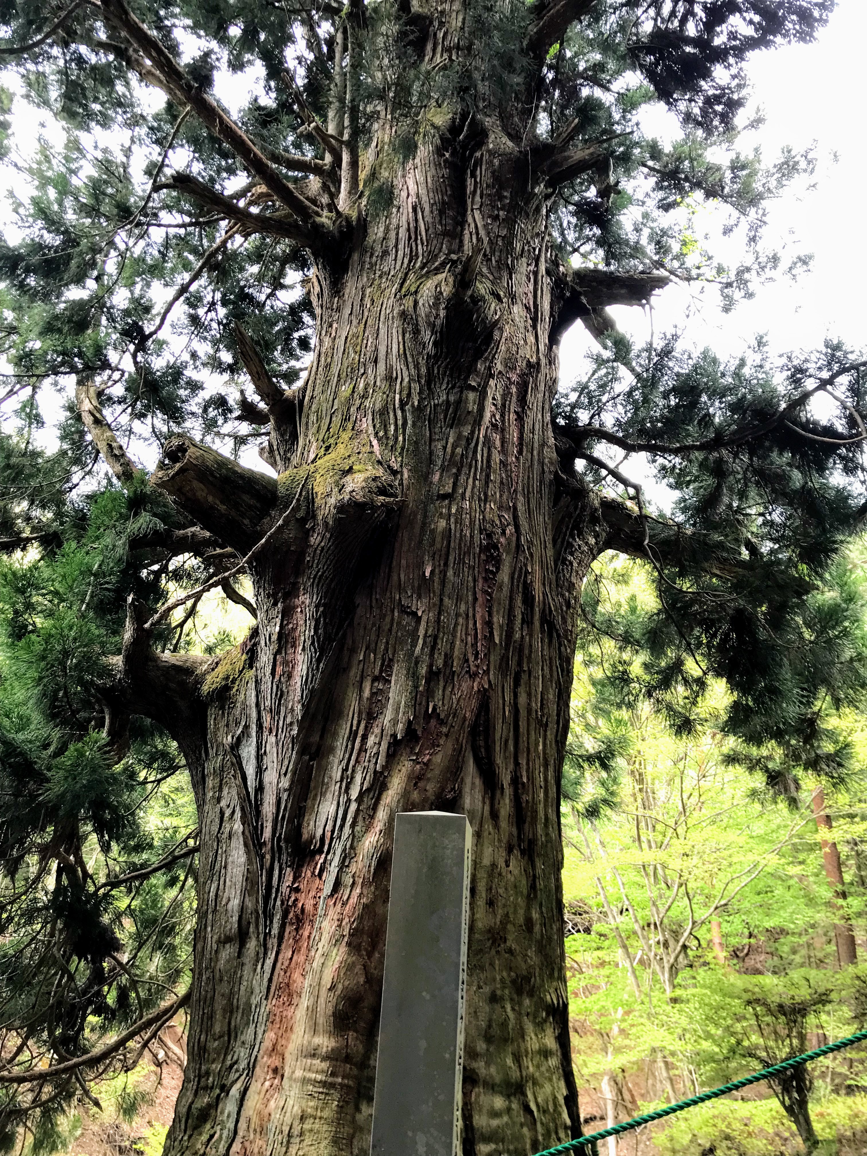 周りの杉と見比べてみても巨大さがよくわかる. 細いのは後から植林された杉なんだろか?