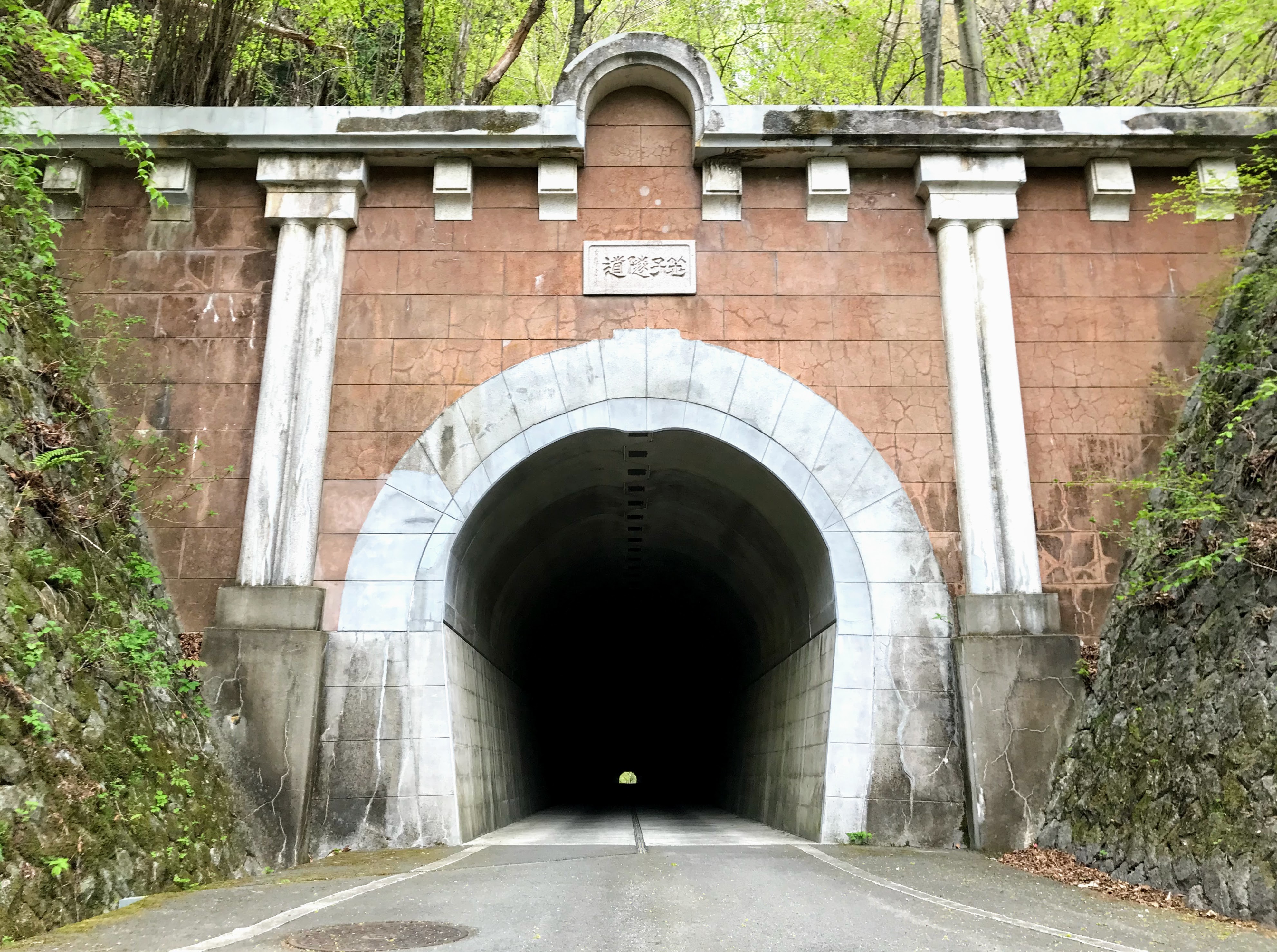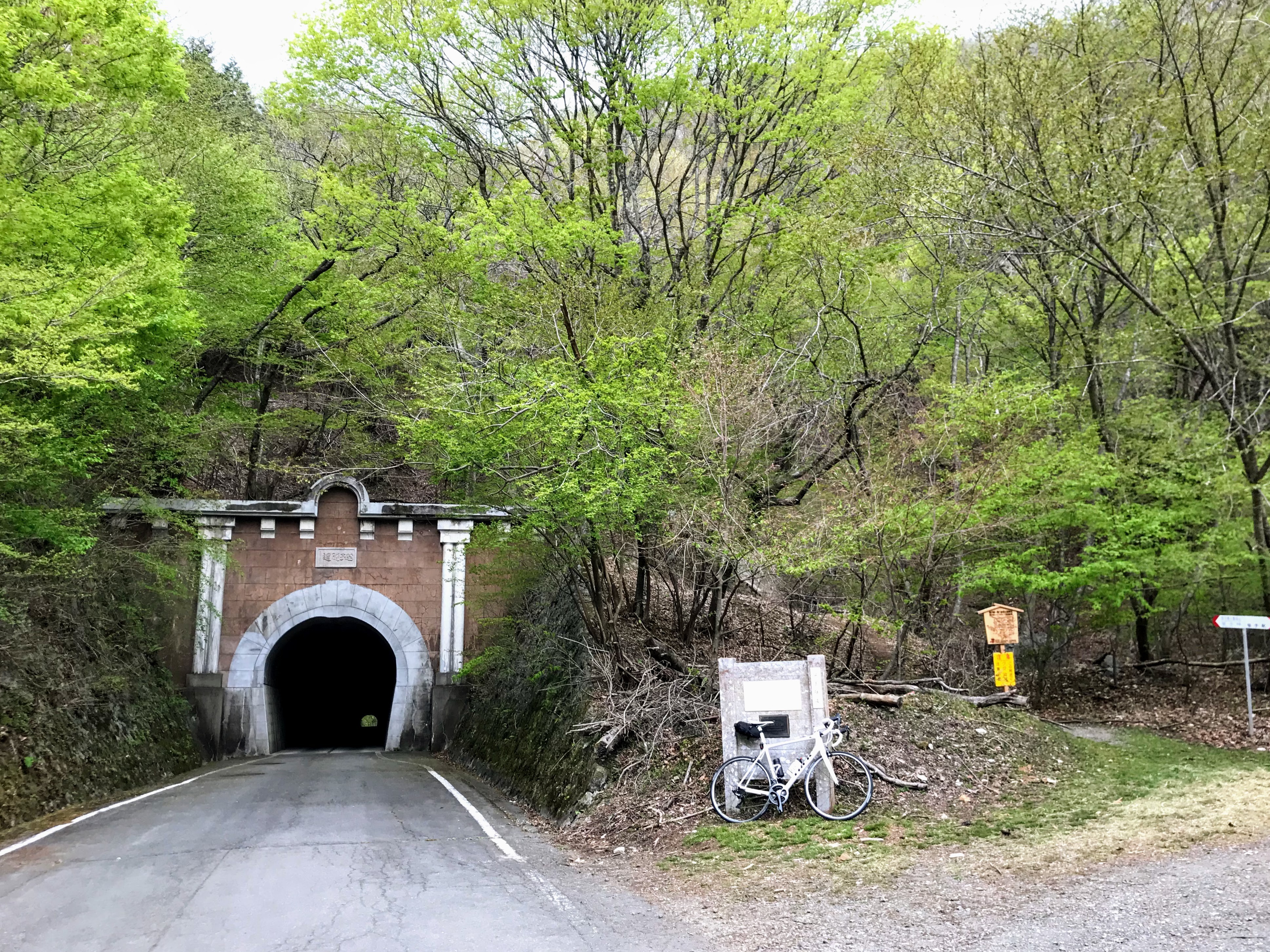 峠の最高地点に到着. トンネルが県境になる. 笹子隧道 という名前らしい.