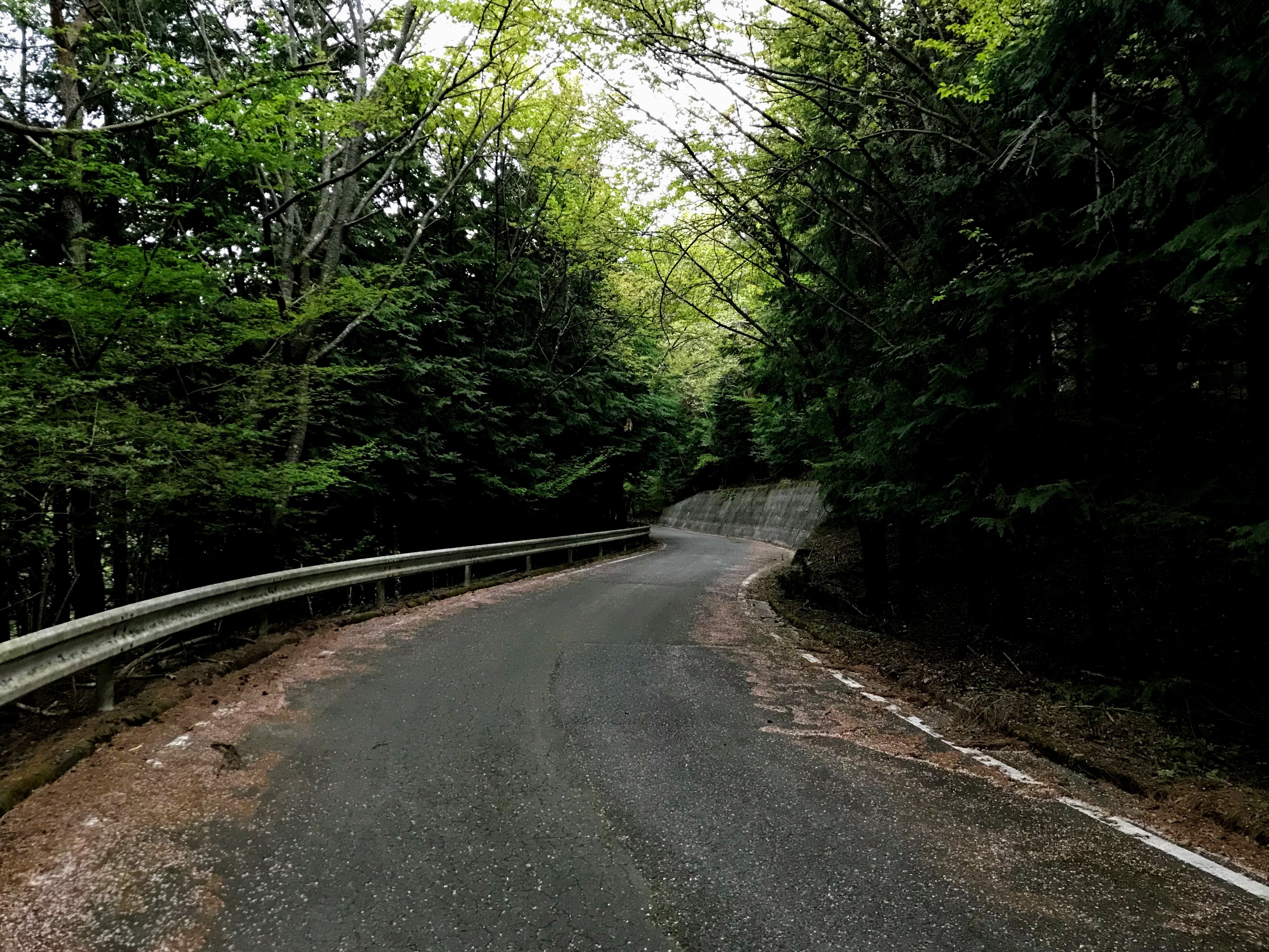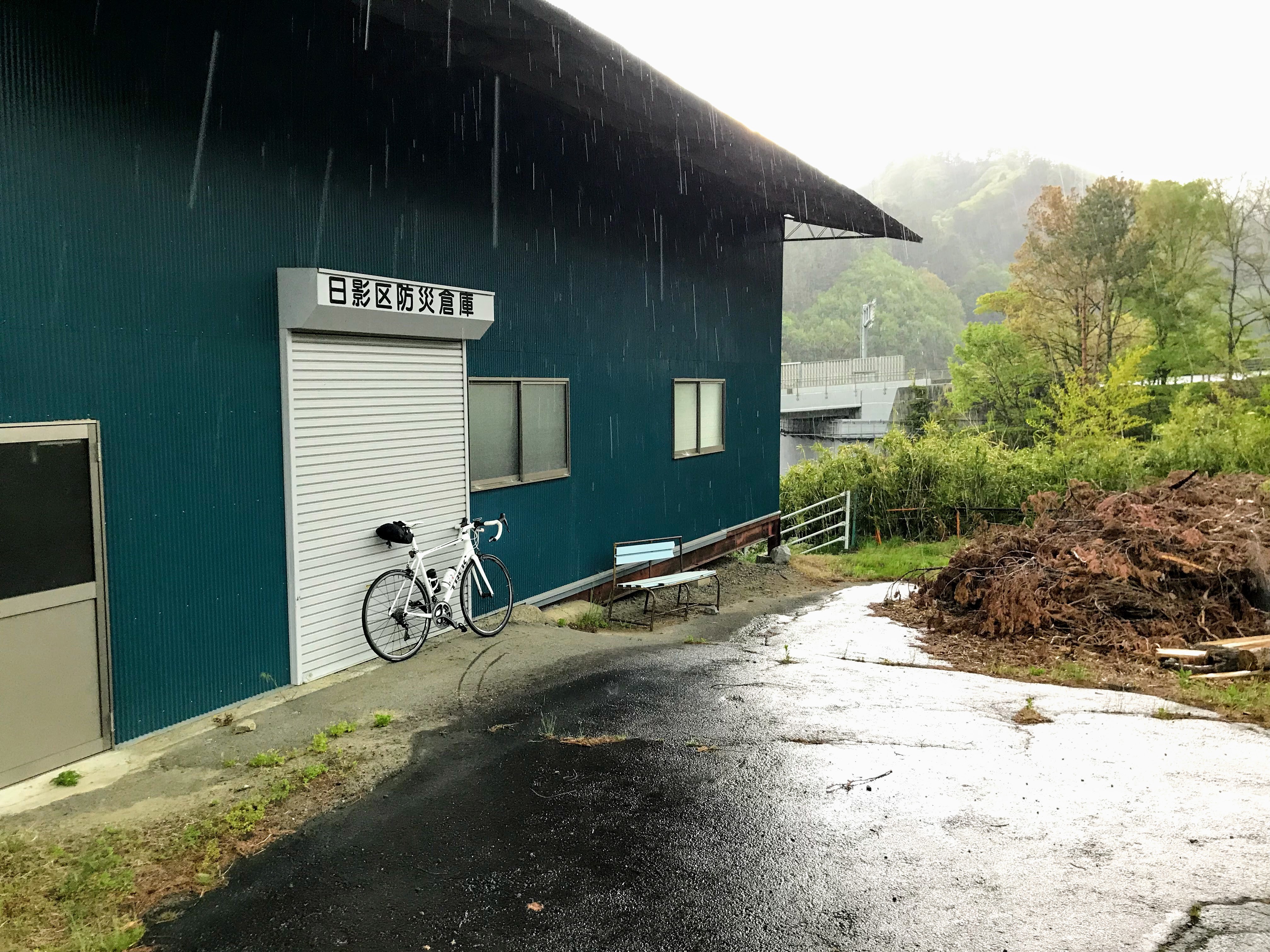 あと少しで峠を下りきるかなというところで、急激に雨脚が強くなりホイールも濡れてしまった. ブレーキが効かなくなり危険を感じたので一旦雨宿り .