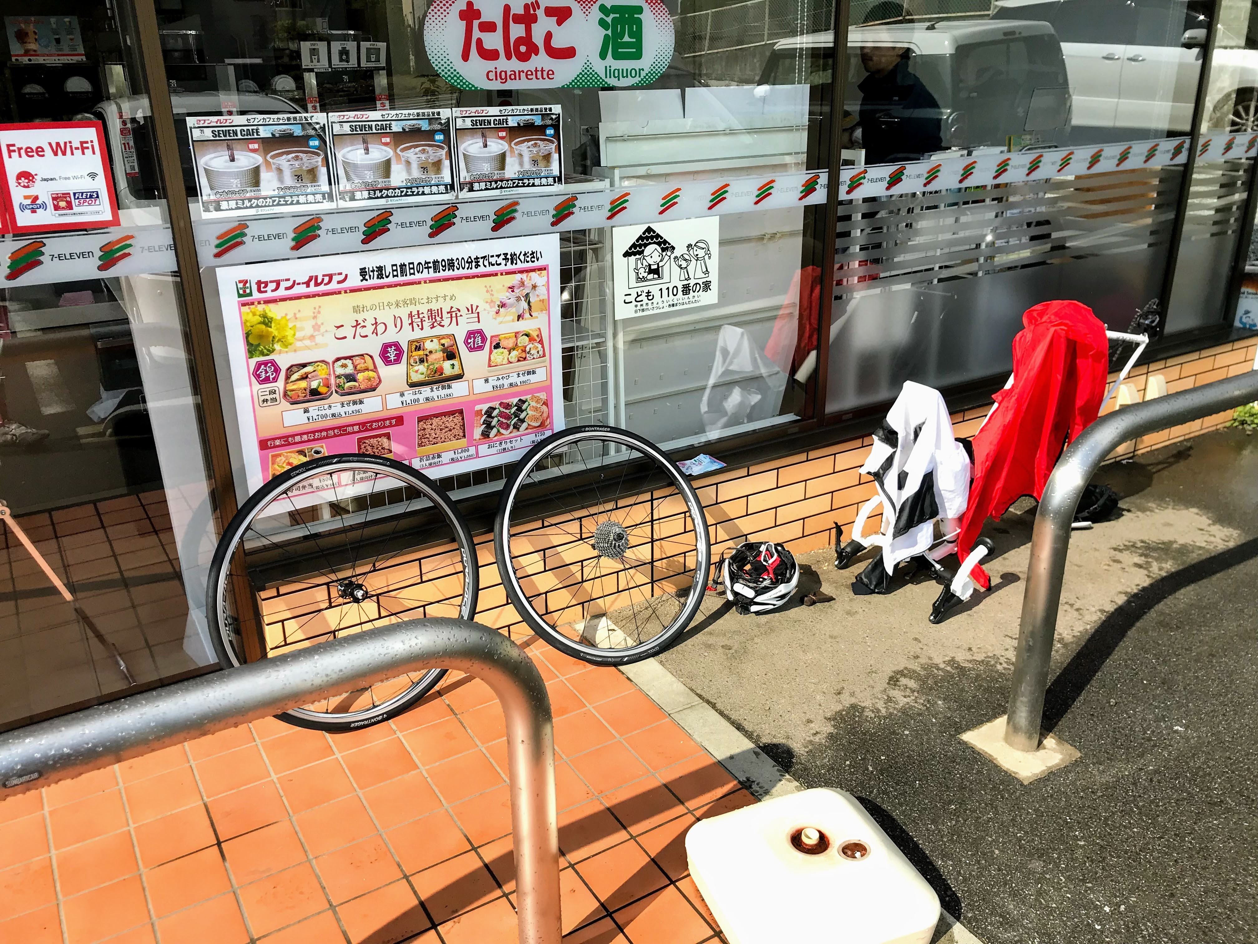 雨宿り地点からもうちょいとダウンヒルをしてセブンイレブンにたどり着きしばらく休憩.