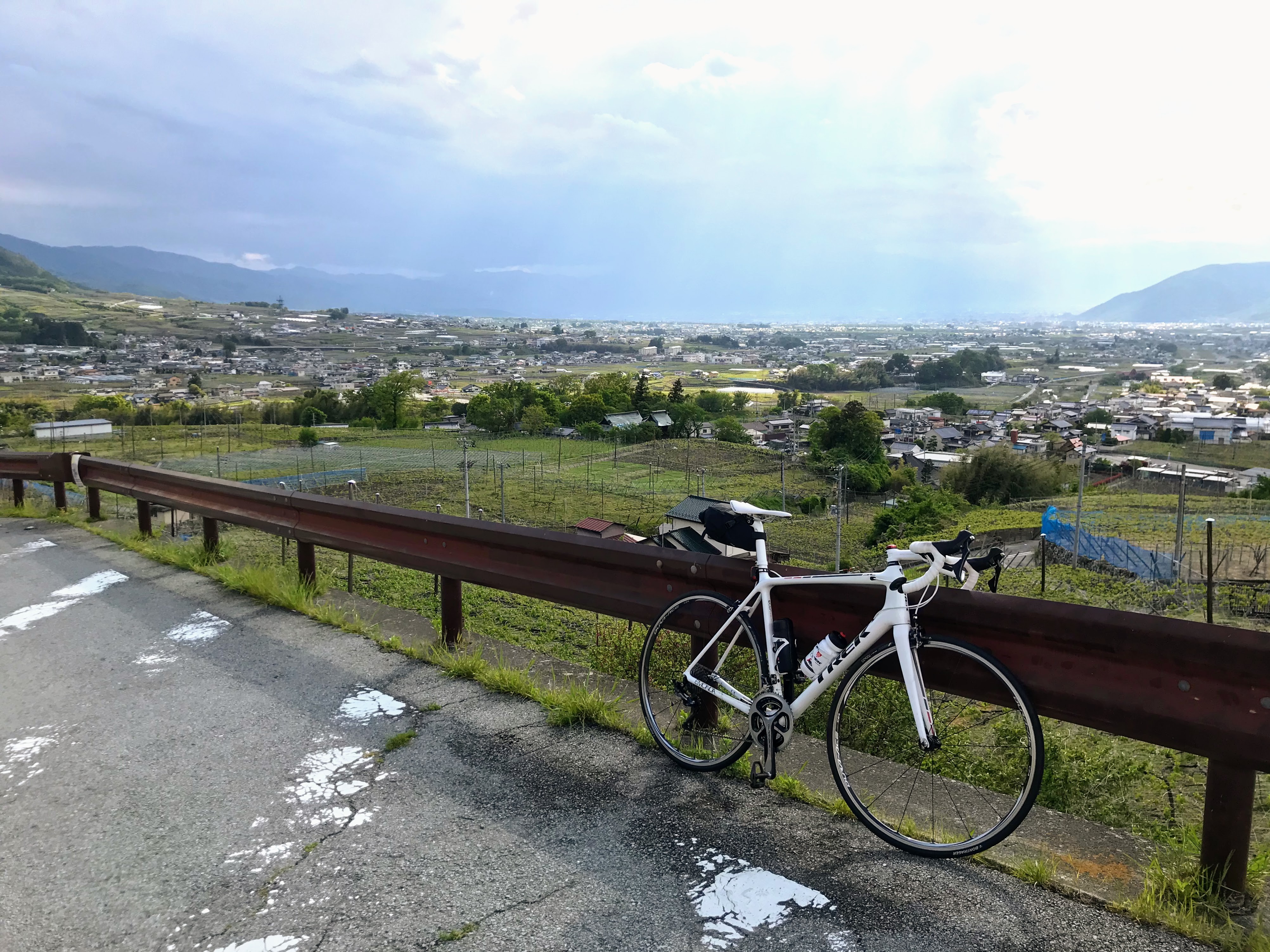 甲州市に向けてダウンヒルを初めたところで本格的に天気が崩れて来て、雷が轟きはじめた. 途中、東京方面に向かう数人の自転車乗りともすれ違ったが 雨は大丈夫だったんだろうかなぁ
