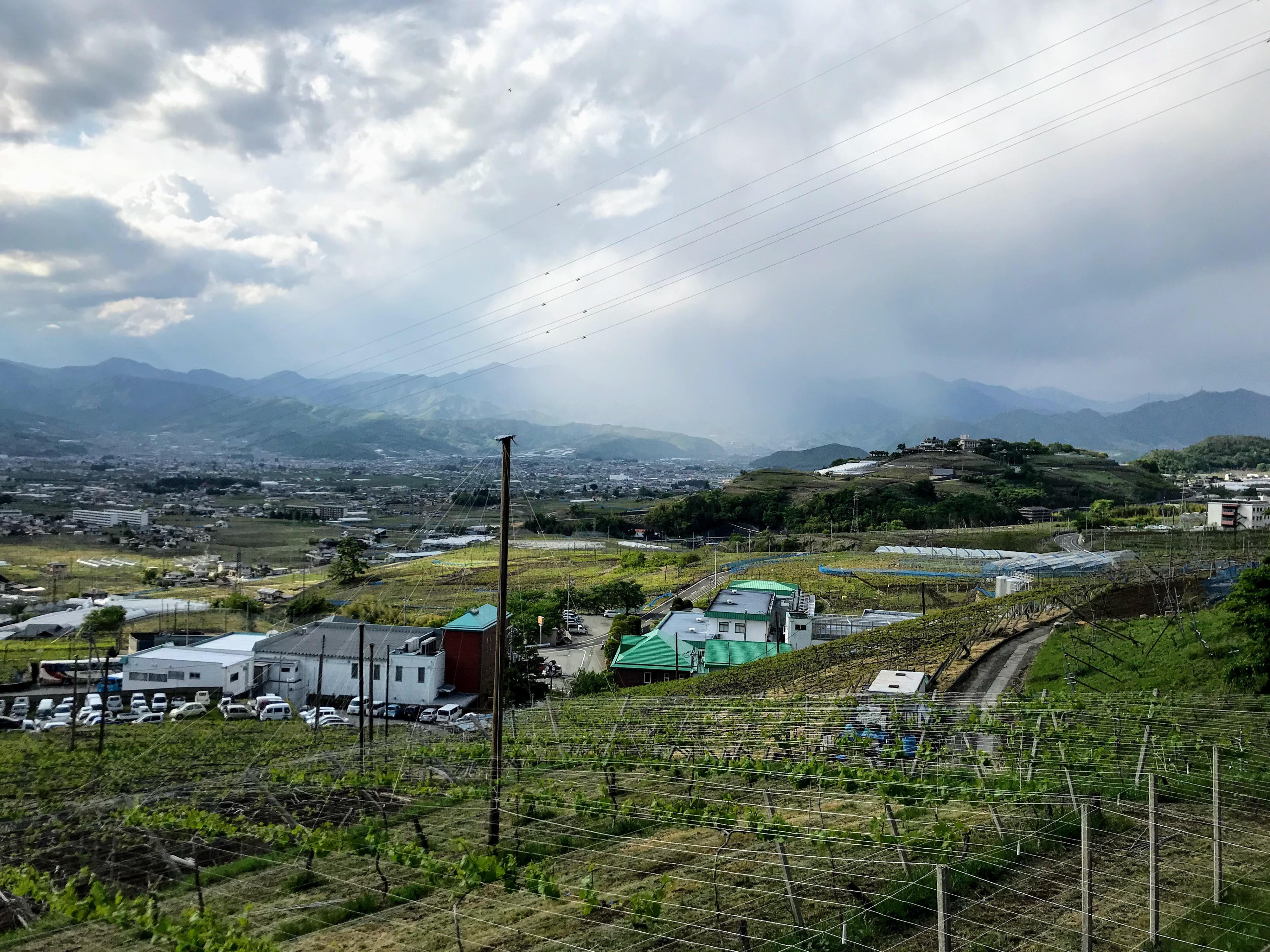 右手に ぶどうの丘 がみえる. フランスあたりの風景に似せた感じなんだろか