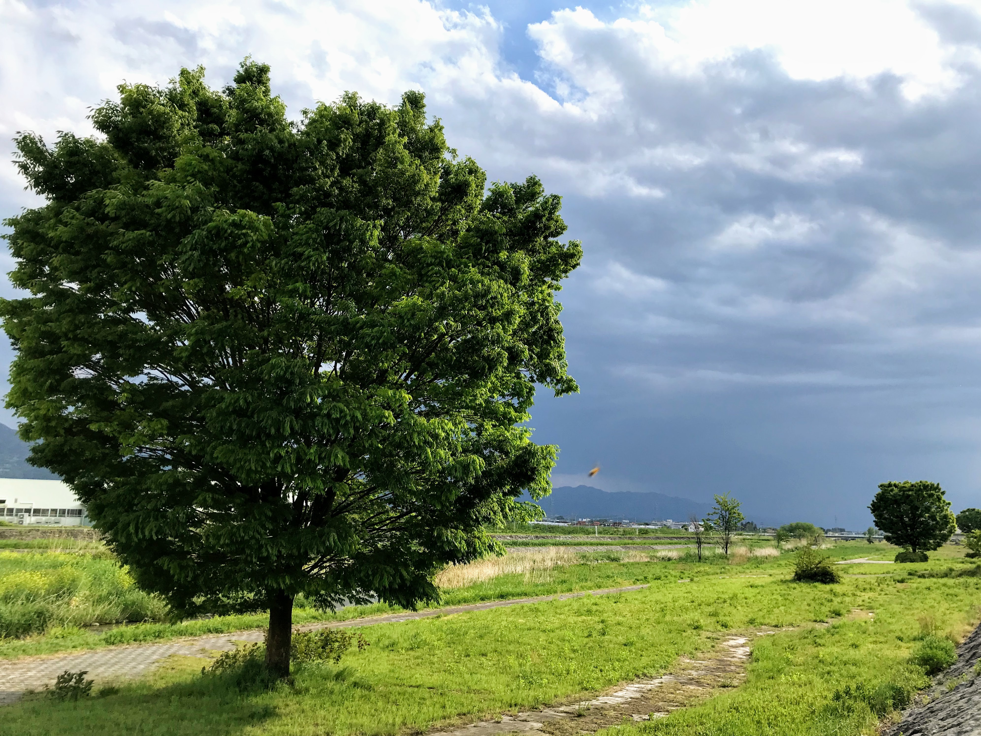 西の空がやっぱり不穏. この時は河口湖方面で雷雨だったぽい. 関東一帯で突発的な雨が降ってたのですね