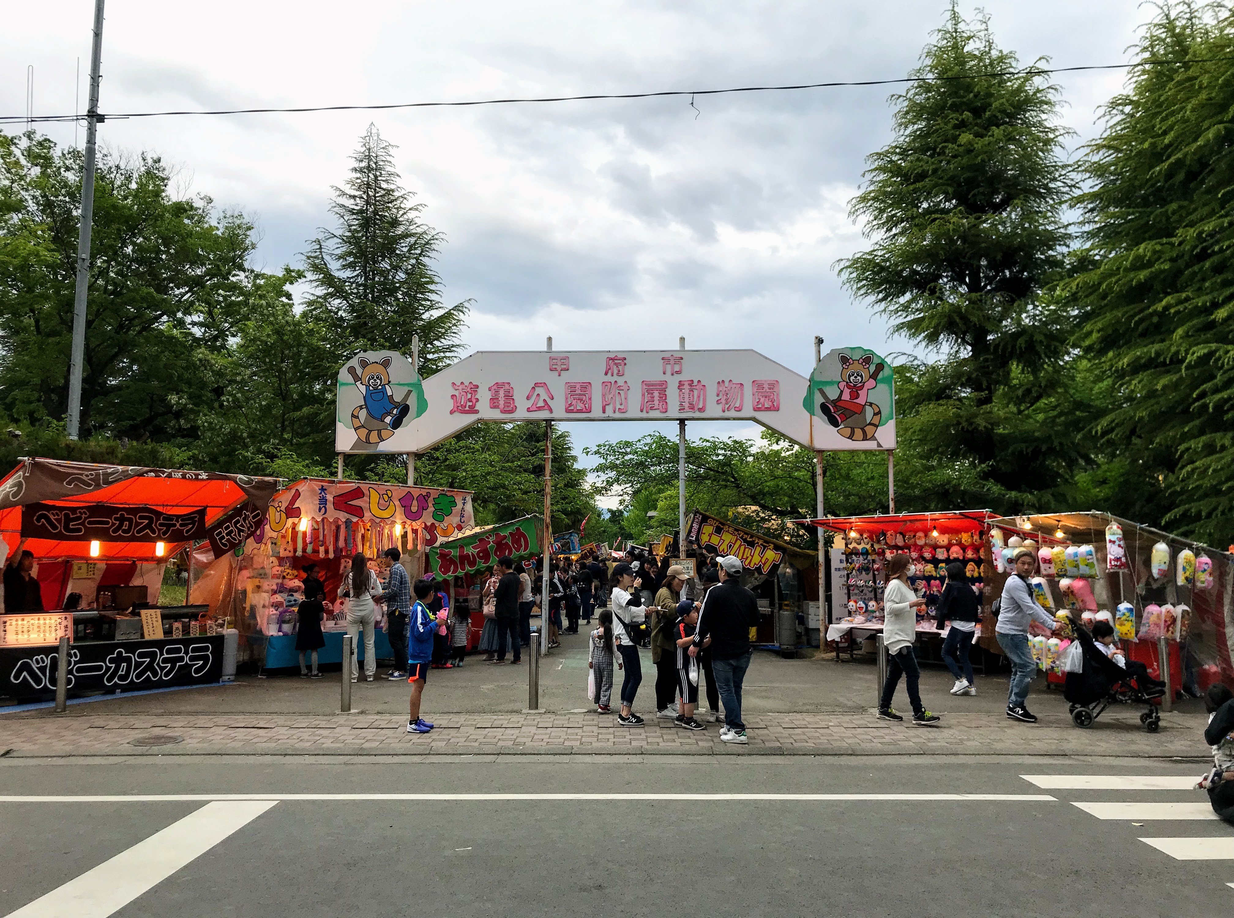 甲府駅に行く途中、遊亀目公園付属動物園で縁日が開催されてた. のんびりしてて えーわ